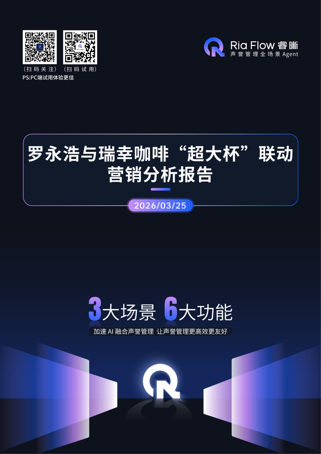 作为声誉管理全场景Agent,Ria Flow睿晰依托品牌声誉分析功能,一键生成《罗永浩与瑞幸咖啡“超大杯”营销分析报告》,以下为核心内容呈现: