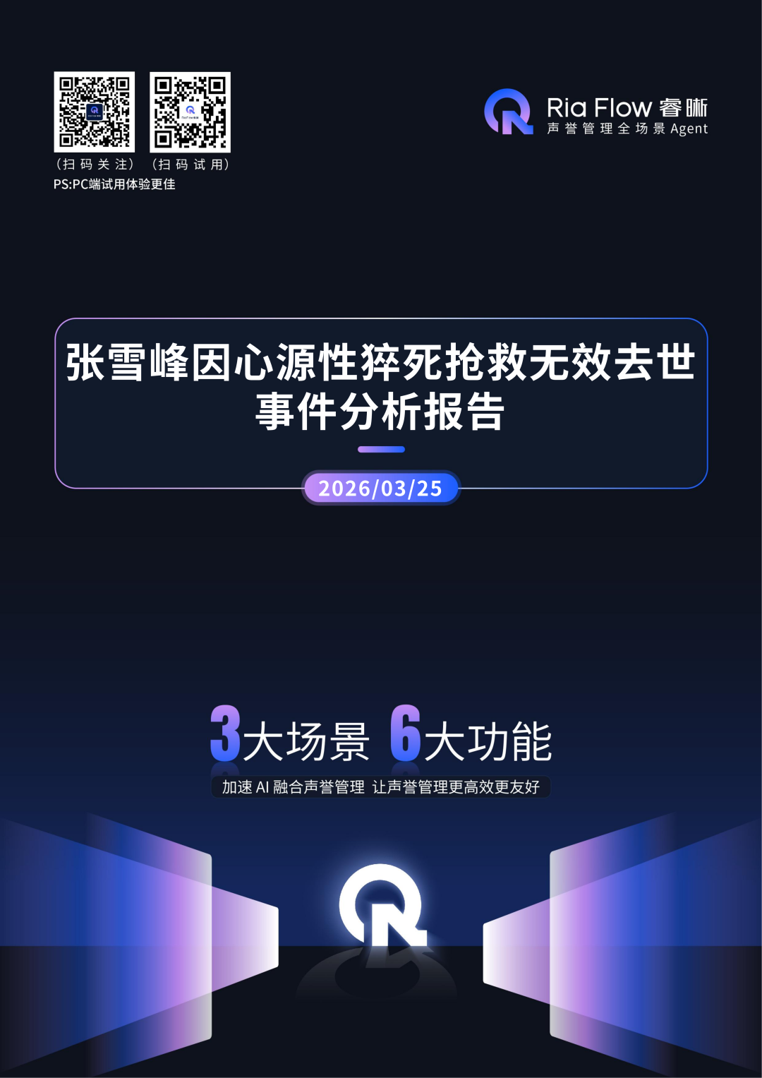 作为声誉管理全场景Agent,Ria Flow睿晰已快速完成对该事件的完整梳理,以下为报告核心内容呈现: