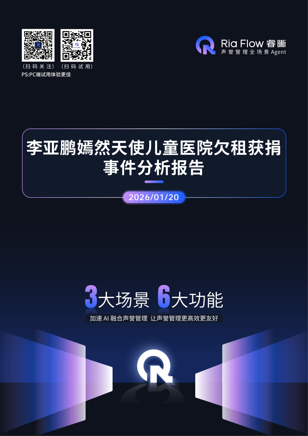 作为声誉管理全场景Agent,Ria Flow睿晰依托一键生成舆情事件分析报告功能,已快速完成对该事件的完整梳理,以下为报告核心内容呈现: