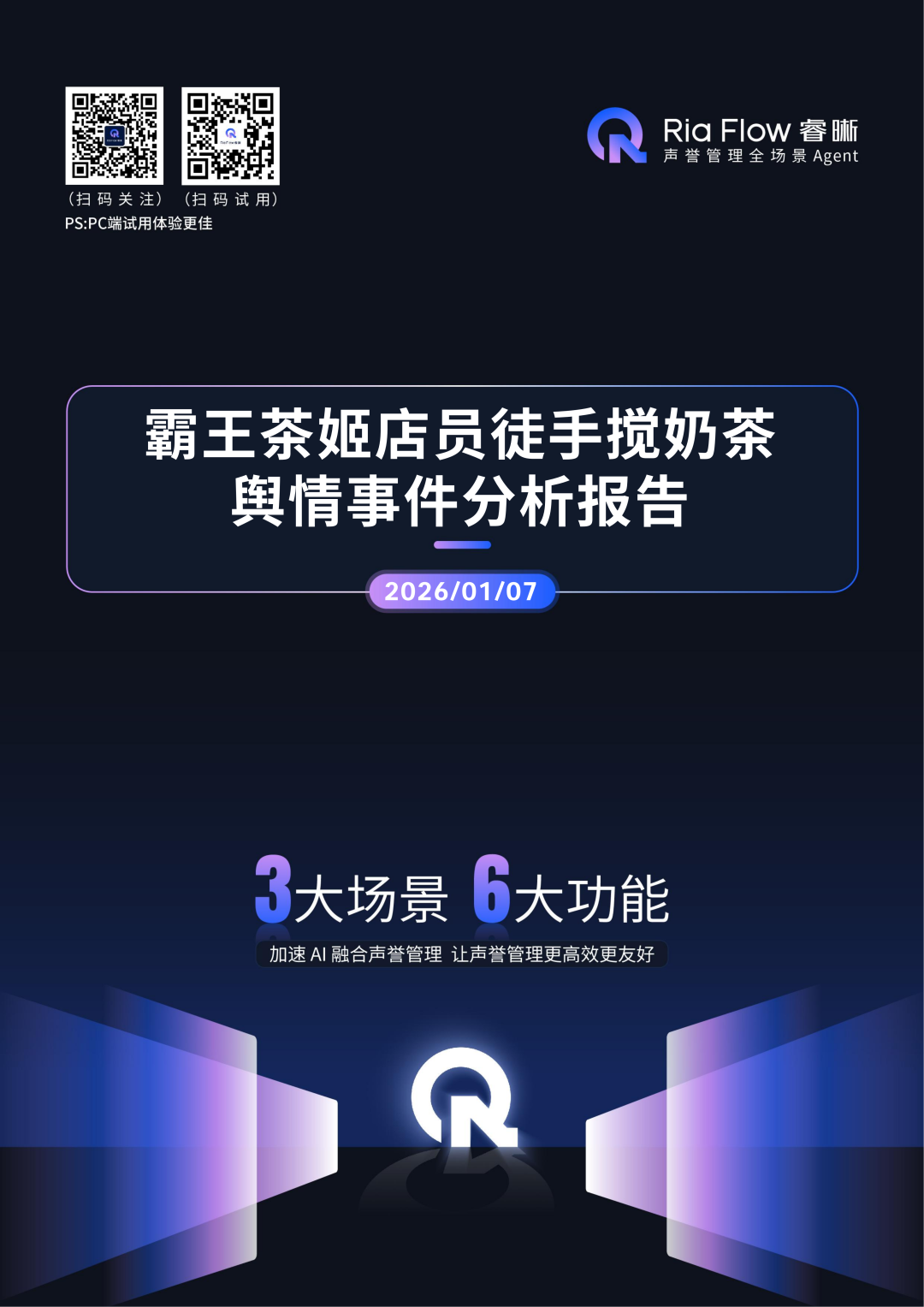 作为声誉管理全场景Agent,Ria Flow睿晰依托一键生成舆情事件分析报告功能,已快速完成对该事件的要点梳理,以下为报告核心内容呈现: