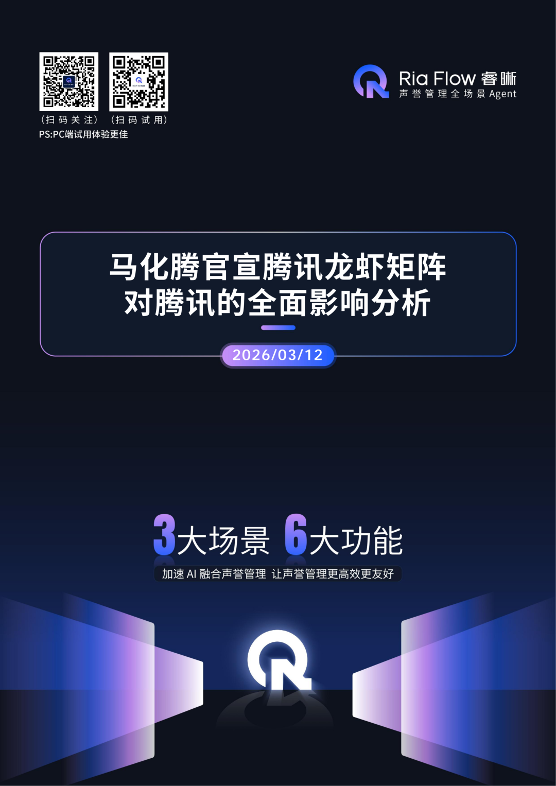 声誉观察 | Tony马官宣腾讯龙虾矩阵对腾讯的全面影响分析