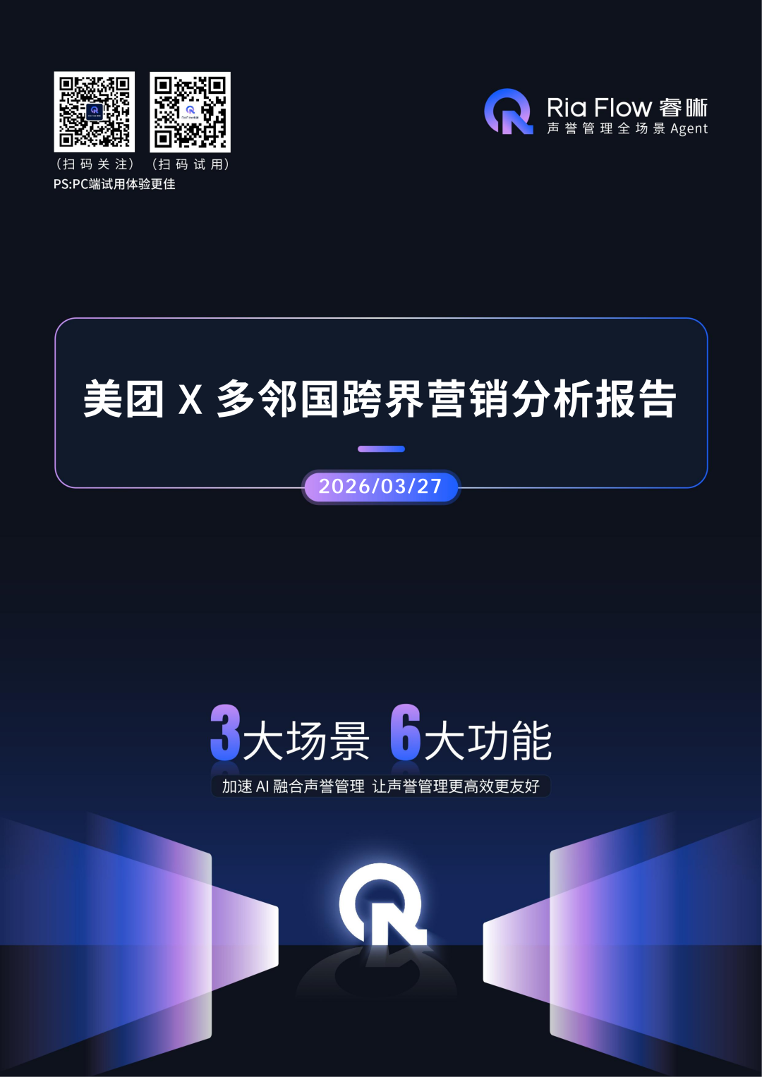 为全面拆解本次联动的底层营销逻辑、全链路传播路径、市场反馈效果与长期品牌价值,Ria Flow 睿晰依托品牌声誉分析功能,通过全平台数据抓取、多维度内容拆解、用户情感洞察与风险趋势预判,一键生成《美团 X 多邻国跨界营销分析报告》,以下为报告核心内容。