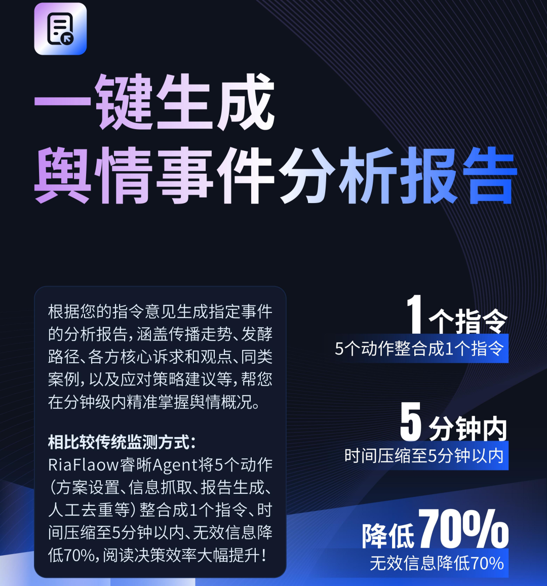 今天我们就结合影石这个案例,聊聊当品牌被黑、被造谣的时候,如何借助Ria Flow睿晰——声誉管理全场景Agent,在5分钟内锁定问题源头、看清事件脉络,并生成一套具体、可落地执行的应对策略。