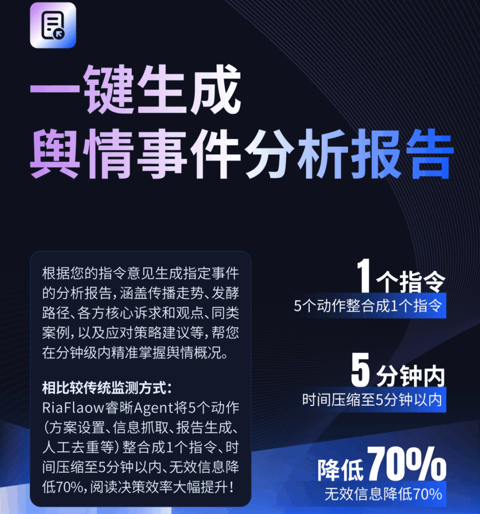 今天我们就结合影石这个案例,聊聊当品牌被黑、被造谣的时候,如何借助Ria Flow睿晰——声誉管理全场景Agent,在5分钟内锁定问题源头、看清事件脉络,并生成一套具体、可落地执行的应对策略。